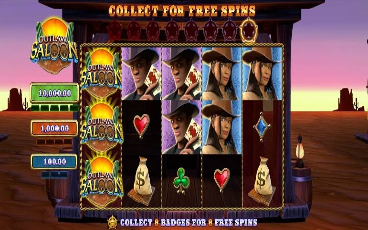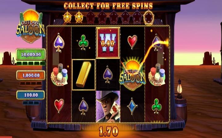 Outlaw Saloon je online kazino slot kompanije Gold Coin Studios smješten na Divljem zapadu. Jedna kaubojka i dva kauboja vode nas na putovanje. Svi oni imaju svoju jedinstvenu funkciju besplatnih okretaja, gdje igrač može da doživi multiplikatore do 9X, zagarantovana ponavljanja i novčane nagrade. Da biste aktivirali besplatne okrete, morate da sakupite šerifove značke koje pokreću respin čim slete. Takođe ćete naći zlatnu polugu koja podivlja i daje opkladu do 5.000 puta više. Mnoge stvari mogu da podivljaju na Zapadu, i najbolje je biti spreman da se sve može dogoditi.
