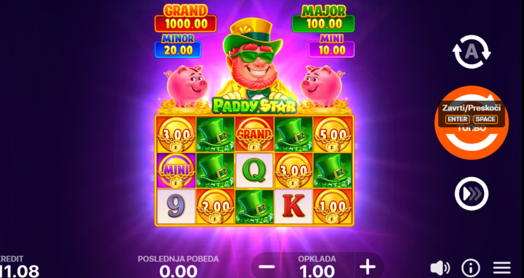Ako volite veselu irsku tematiku, zlatnike i mogućnost velikih dobitaka, Paddy Star: Smash and Win od provajdera Playson donosi upravo to – šarenilo, sreću i nagrade koje mogu iznenaditi svakog igrača!