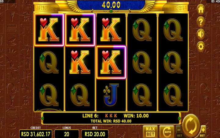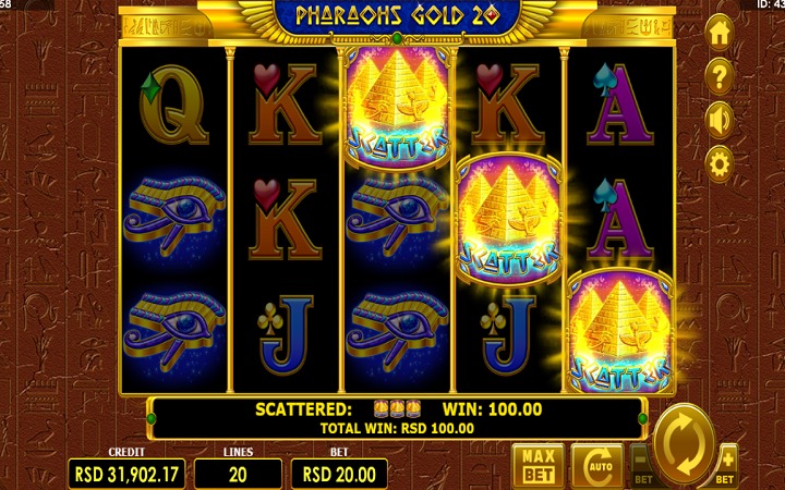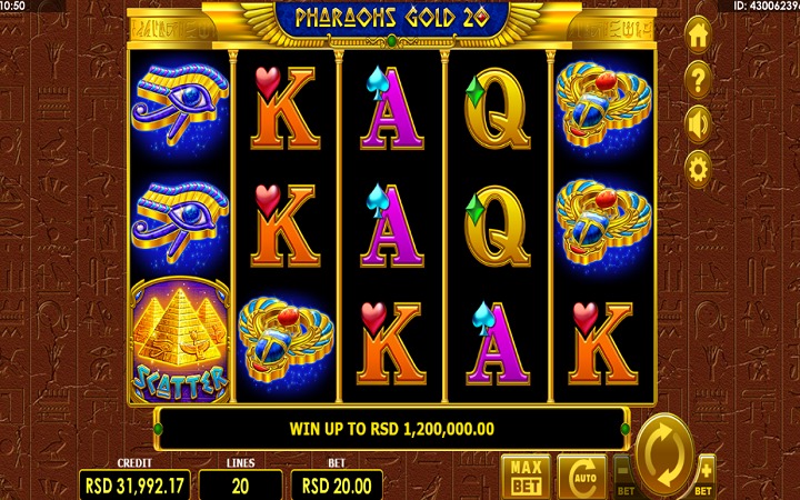 Pharaohs Gold 20 je online slot koji ima pet kolona smještenih u tri reda i 20 fiksnih isplatnih linija. Da biste ostvarili bilo kakav dobitak, potrebno je spojiti tri ili više odgovarajućih simbola na isplatnoj liniji.