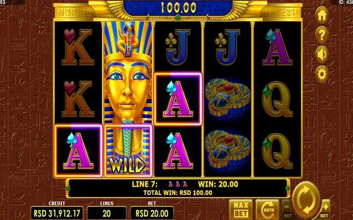 Simbol egipatske bube – skarab – donosi znatno veće dobitke. Pet ovih simbola donosi 10 puta više od uloga.