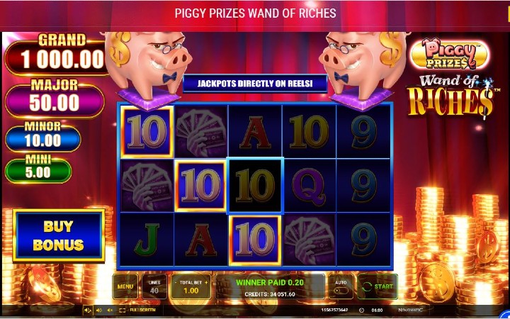 Piggy Prizes Wand of Riches je video slot koji ima pet kolona smještenih u tri reda i ima 40 fiksnih isplatnih linija. Da biste ostvarili bilo kakav dobitak potrebno je spojiti tri ili više odgovarajućih simbola na isplatnoj liniji.