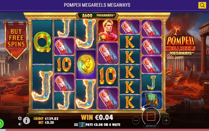 Pompeii Megareels Megaways je video slot koji je kreirao provajder Pragmatic Play. U ovoj online kazino igri vas očekuju sjajni džokeri, besplatni spinovi sa sjajnim množiocima. Tu su i kaskadne kolone, kao i Bonus Buy opcija.