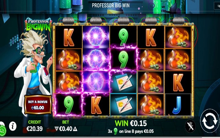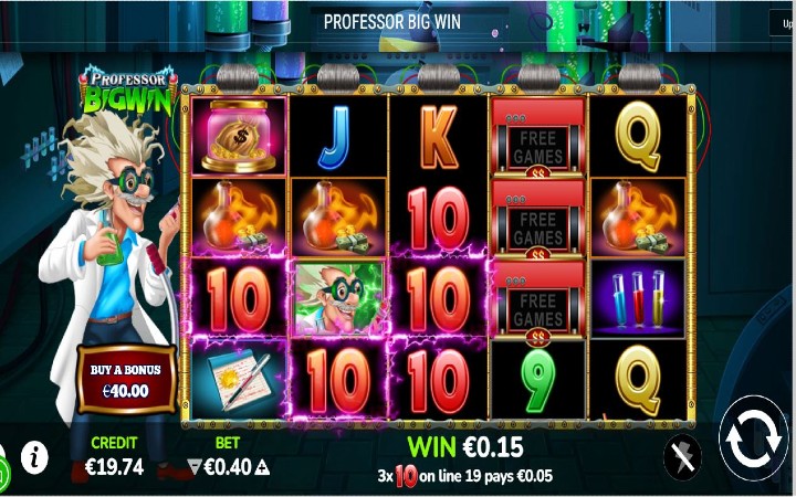 Professor Big Win je video slot koji ima pet kolona smještenih u četiri reda i ima 40 fiksnih isplatnih linija. Da bista ostvarili bilo kakav dobitak potrebno je spojiti tri ili više odgovarajuća simbola na isplatnoj liniji.