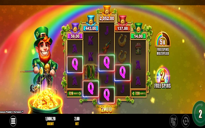 Rainbow Bonanza Paddy’s Fortunes je online slot sa pet kolona. Raspored simbola po kolonama je u formaciji 3-4-4-4-3, a igra ima 720 dobitnih kombinacija. Da biste ostvarili bilo kakav dobitak, potrebno je spojiti tri ili više odgovarajućih simbola u dobitnom nizu.