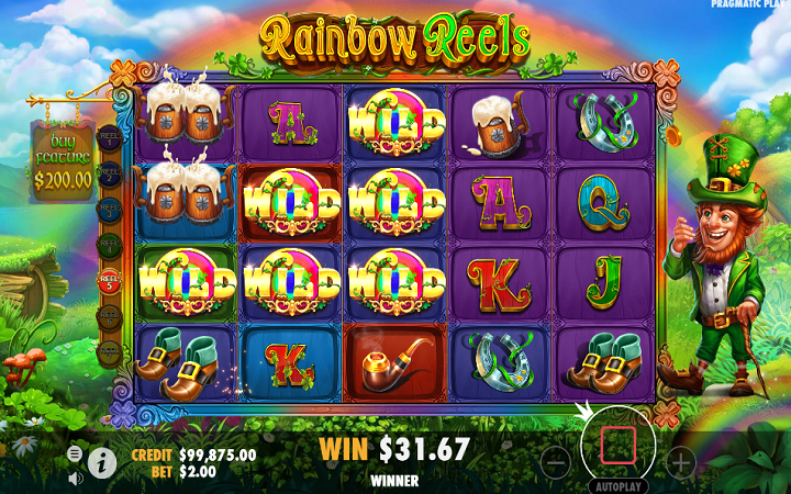 Rainbow Reels je video slot koji ima pet kolona smještenih u četiri reda i ima 40 fiksnih isplatnih linija. Da biste ostvarili bilo kakav dobitak potrebno je spojiti tri ili više odgovarajućih simbola na isplatnoj liniji.