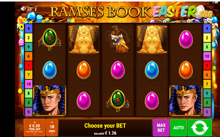 Ramses Book Easter Egg je video slot igra koju je lansirao provajder Gamomat. U ovoj online kazino igri vas očekuju džokeri, razni bonusi, a tu je i mogućnost kockanja na dva načina.