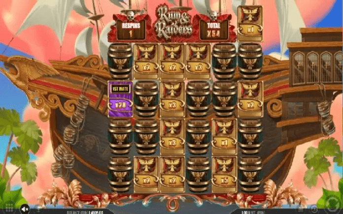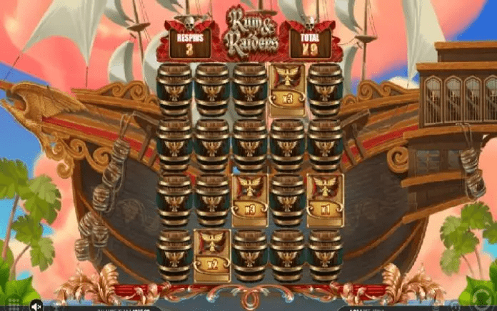 U slotu Rum and Raiders tri ili više scatter simbola će pokrenuti funkciju Hold and Win i ovdje vam se dodeljuju tri respina, a svi scatter simboli se transformišu u zastavice sa vrijednostima množitelja, a svi ostali simboli se uklanjaju sa kolona.
