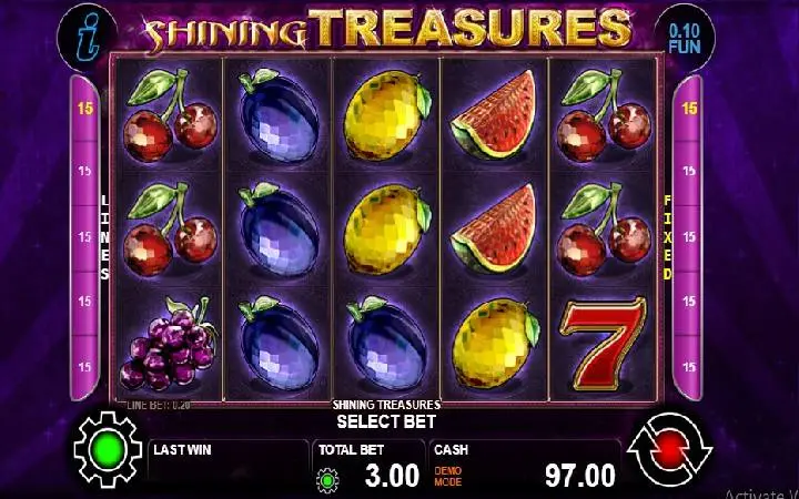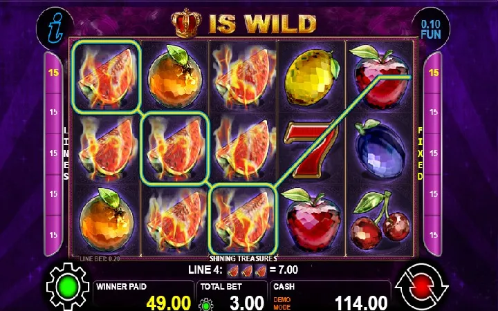 Upoznajte se sa luksuznim voćnim plodovima u slotu Shining Treasures koji dolazi od provajdera CT Interactive. Ova online kazino igra ima džoker simbol u obliku kraljevske krune, scatter simbol i bonus igru kockanja.