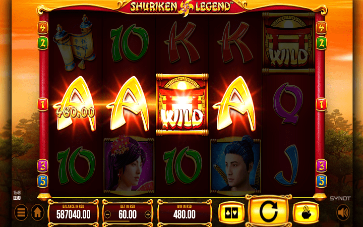 Shuriken Legend je video slot koji ima pet kolona smještenih u tri reda i ima pet fiksnih isplatnih linija. Da biste ostvarili bilo kakav dobitak potrebno je spojiti minimum dva ili tri odgovarajuća simbola na isplatnoj liniji.