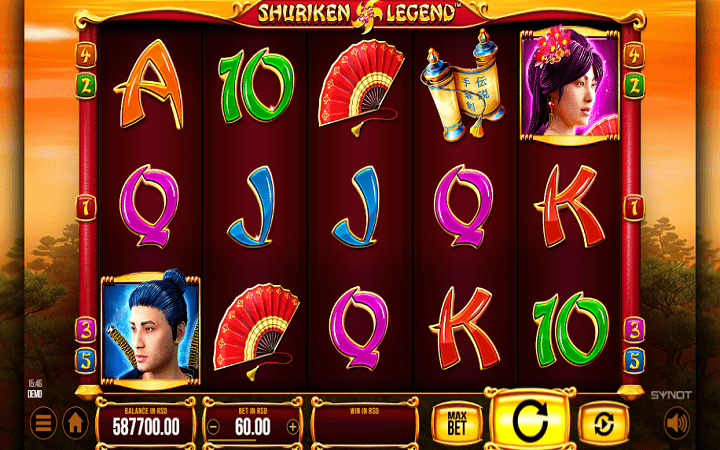 Shuriken Legend je video slot koji nam predstavlja provajder Synot. U ovoj online kazino igri ćete uživati u moćnim džokerima. Besplatni spinovi će vam donijeti još jednu sjajnu stvar, a tu su ljepljivi džoker simboli.