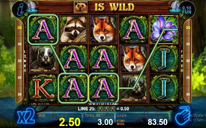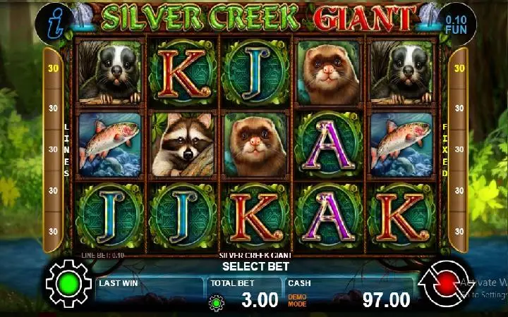 Slot Silver Creek Giant je napravljen sa velikom pažnjom i pored lijepo dizajniranih simbola životinja, tu su i kartaški simboli. Poazdina igre prikazuje šumu i rijeke u kojoj žive ove životinje.