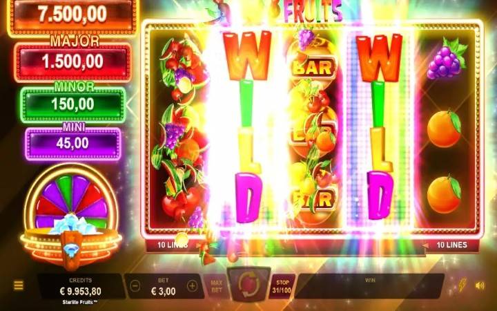 Linije za isplatu u slotu Starlite Fruits pobjeđuju ne samo sa lijeve na desnu stranu, već i sa desne na lijevu, što će svakako uticati na količinu i učestalost dobitaka.