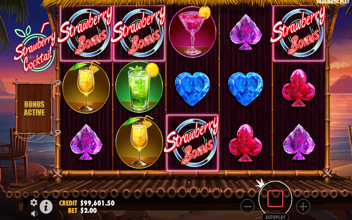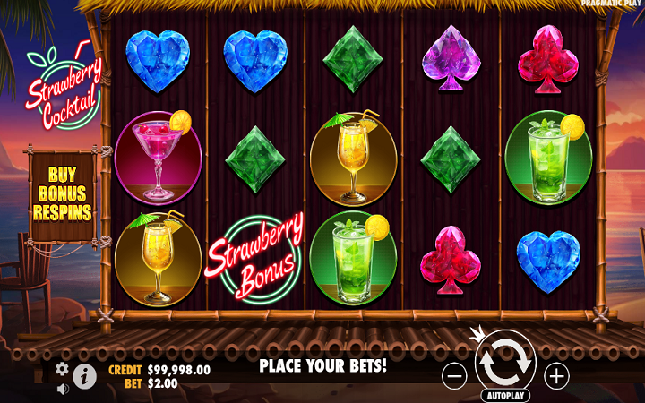 Kolone slota Strawberry Cocktail su smještene u baru koji se nalazi na obali mora. Uzbudljiva muzika je prisutna sve vrijeme dok se zabavljate.