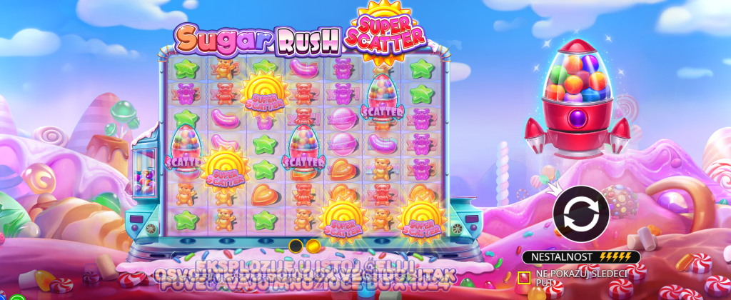 Ova funkcija čini Sugar Rush Super Scatter posebno zanimljivim za igrače koji love bonus igre i veće isplate.