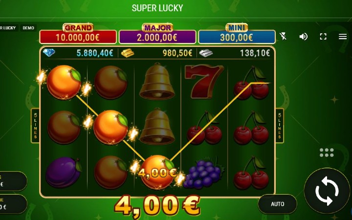 Super Lucky je online slot koji ima pet kolona smještenih u tri reda i ima 5 fiksnih isplatnih linija. Da biste ostvarili bilo kakav dobitak potrebno je spojiti tri ili više odgovarajuća simbola na isplatnoj liniji.