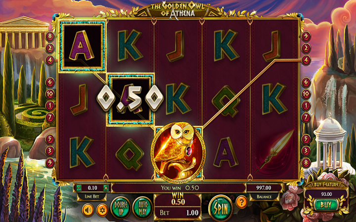 The Golden Owl of Athena je online slot koji ima pet kolona smještenih u tri reda i ima 10 fiksnih isplatnih linija. Da biste ostvarili bilo kakav dobitak potrebno je spojiti minimum dva ili tri odgovarajuća simbola na isplatnoj liniji.