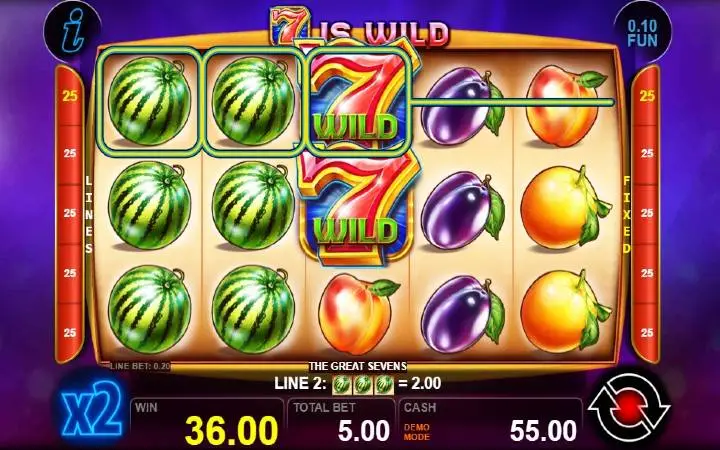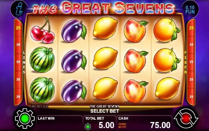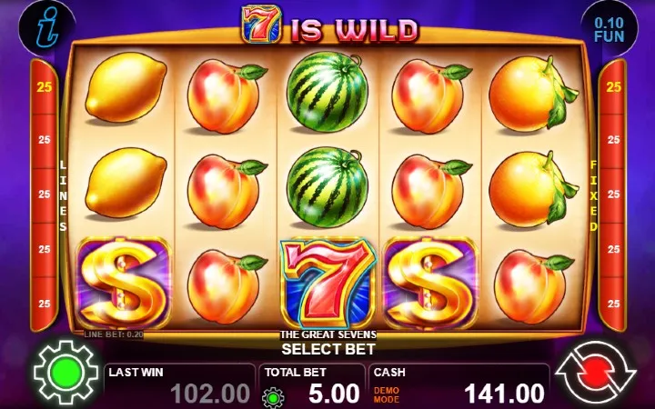 The Great Sevens je klasičan slot koji ima pet kolona smještenih u tri reda i ima 25 fiksnih isplatnih linija. Da biste ostvarili bilo kakav dobitak potrebno je spojiti tri ili više podudarajućih simbola na isplatnoj liniji.