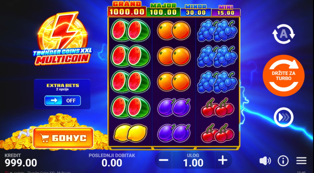 Ako voliš slot igre sa brzim tempom i jasnim fokusom na velike dobitke, Thunder Coins XXL: Multicoin od provajdera Playson donosi kombinaciju klasičnog dizajna i modernih bonus funkcija.