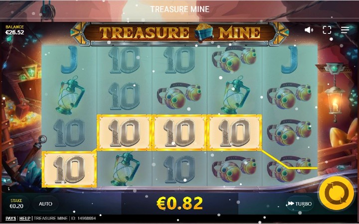 Treasure Mine je online slot koji ima pet kolona smještenih u četiri reda i ima 40 fiksnih isplatnih linija. Da biste ostvarili bilo kakav dobitak potrebno je spojiti tri ili više odgovarajućih simbola na isplatnoj liniji.