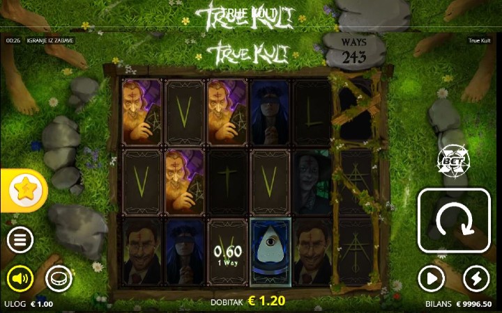 True Kult je video slot koji ima šest kolona, smještenih u tri reda i 243 dobitne kombinacije. Da biste ostvarili bilo kakav dobitak potrebno je spojiti tri ili više odgovarajućih simbola u dobitnom nizu.