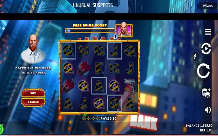 Unusual Suspects je video slot koji ima pet kolona smještenih u četiri reda i ima 20 fiksnih isplatnih linija. Da biste ostvarili bilo kakav dobitak potrebno je spojiti tri ili više odgovarajućih simbola na isplatnoj liniji.