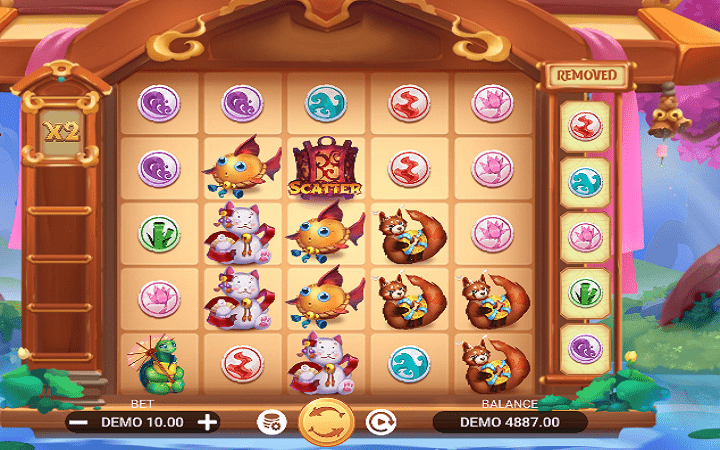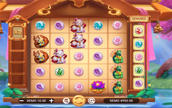 A zatim tu je kornjača, koja sa se sakrila ispod svog kišobrana zbog prejakog sunca, ali kad se pojavi na kolonama iznenadiće vas sa 3x više nego što je vaš ulog. Dok je najisplatljiviji simbol mačka, koja osim što pokazuje svoju lepezu, obezbjeđuje 4x više od vašeg uloga.