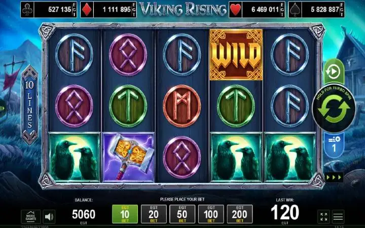 Viking Rising je video slot koji ima pet kolona smještenih u tri reda i ima 10 fiksnih isplatnih linija. Da biste ostvarili bilo kakav dobitak potrebno je spojiti minimum tri ili više podudarajućih simbola na isplatnoj liniji.