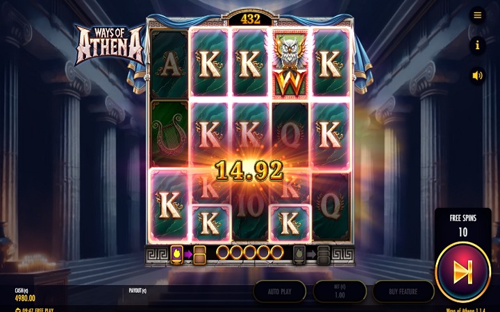 • Najvrijedniji osnovni simbol je boginja Atina – pet njenih simbola na pet različitih kolona donosi pet puta više od uloga.