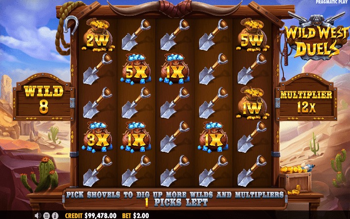 Kolone slota Wild West Duels postavljene su na improvizovano drveno postolje, u stilu pravog Divljeg zapada. Tokom igre, uživaćete u muzici karakterističnoj za stare vestern filmove.