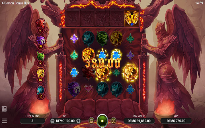 X Demon Bonus Buy je video slot koji ima pet kolona smještenih u četiri reda i ima 20 fiksnih isplatnih linija. Da biste ostvarili bilo kakav dobitak potrebno je spojiti tri ili više odgovarajuća simbola na isplatnoj liniji.