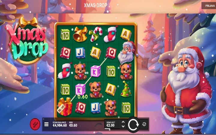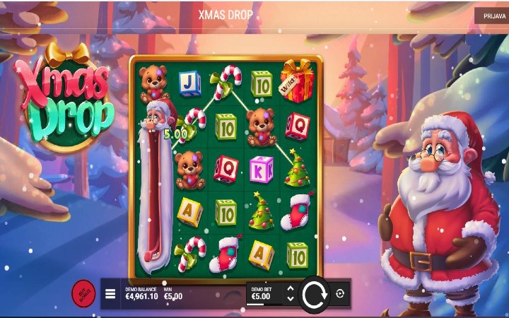 Xmas Drop je online slot koji je kreirao proizvođač igara Hacksaw Gaming. Ova online kazino igra se odlikuje Night Before Xmas Bonus i Santa Claus is Comnig to Town Bonusom. Tu su i džokeri koji su vaša prečica do dobitaka.