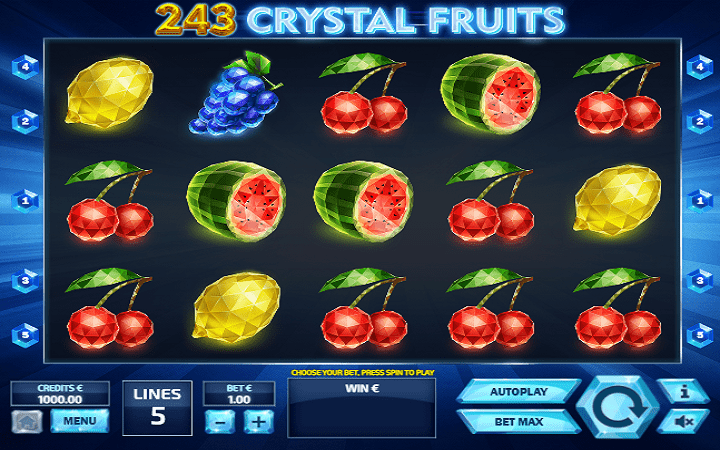 Donosimo slot od proizvođača online kazino igara Microgaming, ovog puta naziv slota jeste 243 Crystal Fruits. Rilovima dominiraju voćni simboli, ali postoji i par simbola kojima su pojačane funkcije ove igre. U prvu grupu spadaju grožđe, limun, kivi i trešnje, drugu grupu voćkica čine šljive, narandže i lubenice. Tokom osnovne igre tri do pet dobitnih simbola donijeće vam potencijalnu isplatu od x2 do x4 visine vašeg uloga. Ukoliko tokom Respin funkcije složite kombinaciju ovih simbola isplaćuje se od x6 do x24 više nego što ste uložili.