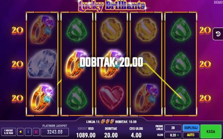 Ova nazovimo klasika mi je odma legla, pricam o Lucky Brilliants koji ima bas dobre funkcije, bonusi su ok, sve u svemu sve sto je potrebno za plus na racunu.