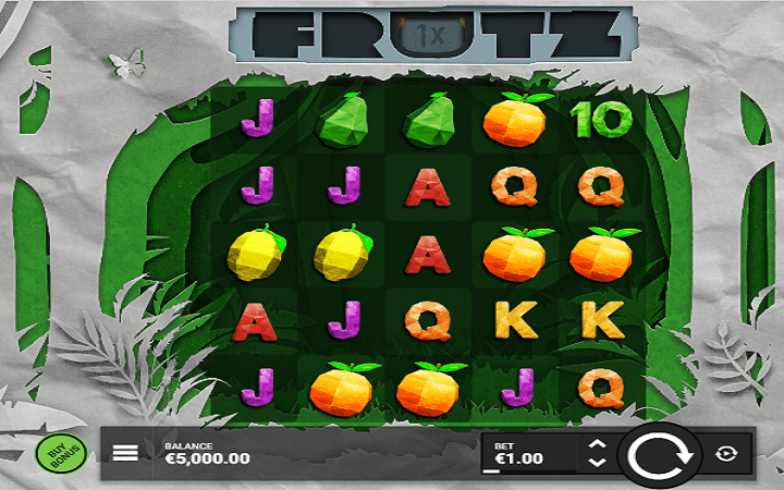 Drugi slot koji se našao u našem članku Drugi dio kazino igara koje omogućavaju vrhunske dobitke jeste slot Frutz koji nam je predstavio proizvođač online kazino igara Hacksaw Gaming. Frutz je neobičan slot koji ima pet kolona u pet redova a o klasičnim isplatnim linijama ne možemo govoriti. Sve što je vama potrebno da biste ostvarili bilo kakav dobitak jeste pet simbola u dobitnoj kombinaciji. Simboli najmanje isplatne vrijednosti su klasični kartaški simboli:10, J, Q, K i A i ovi simboli su identične isplatne vrijednosti.