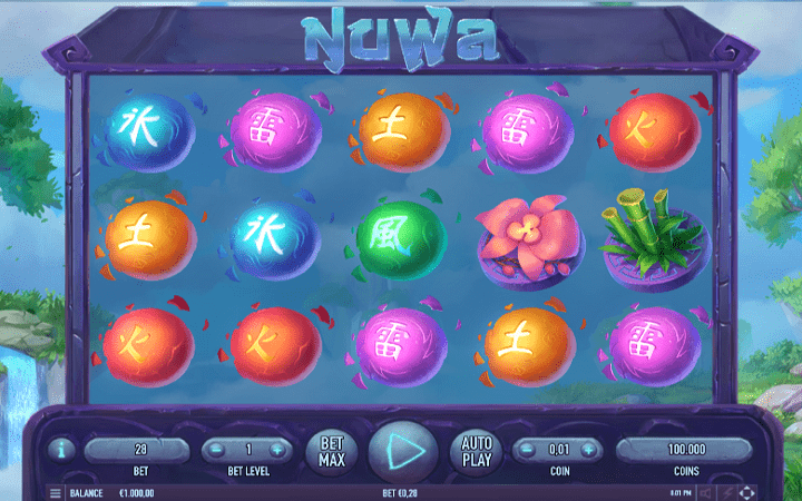 A jeste li spremni za moćni džekpot koji će omogućiti kazino igra Nuwa? Ovog puta proizvođač koji je zadužen za ovu kazino igru jeste Habanero, hajde da vidimo šta je on to predstavio u istoj. Nuwa je džoker tj. wild simbol i može da zamjenjuje sve ostale simbole, osimscatter simbola. Džoker se moze pojaviti samo na rilovima 1 i 3, tokom osnovne igre. Scattersimbol je ljubičasta zmija, koja može formirati dobitne kombinacije sa tri ili vise skejtera, bilo gdje na rilovima. Tri ili vise scatter-a će pokrenuti besplatne igre i dobićete osam free spinova.