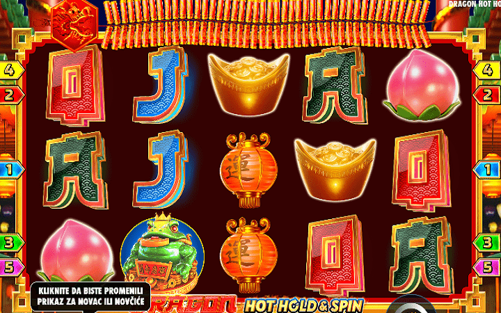 Još jedna kazino igra koja će omogućiti i do 5.000 puta više jeste Dragon Hot Hold and Spin, koju je predstavio proizvođač online kazino igara Pragamatic Play. Sigurno ste upućeni u dobro pozati serijal kazino igara Hold and Spin, pa smo mi izabrali da baš jedna kazino igra iz serijala se nađe u našem članku. Dragon Hot Hold and Spin je slot kineske tematike koji ima pet kolona smještenih u tri reda i pet fiksnih isplatnih linija. Simboli najmanje isplatne vrijednosti u slotu su klasični kartaški simboli: J, Q, K i A, Identičnu isplatnu vrijednost donijeće vam lampion kao i cvijet ružičaste boje.