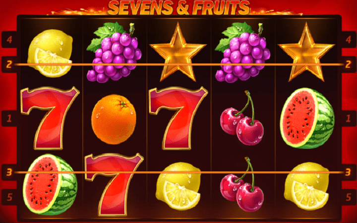Sevens and Fruits ima pet rilova u tri reda i pet fiksnih isplatnih linija. Dakle, broj isplatnih linija ne možete podešavati. Isplatne kombinacije se računaju isključivo slijeva udesno, počevši od prvog rila sa lijeve strane. Četiri voćkice spadaju u tu grupu i to su: trešnje, limun, narandža i šljiva. Tri simbola na isplatnoj liniji donijeće vam uvećanje uloga od četiri puta, četiri simbola donosi 10, dok pet simbola na isplatnoj liniji donosi vaš ulog uvećan čak 40 puta. Ovdje treba pomenuti da trešnje donose isplatu i za dva simbola na isplatnoj liniji i to u iznosu od 0,6 puta većem od vašeg uloga.
