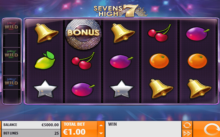 Video slot Sevens High ima postavku na pet rilova u tri reda i 25 isplatnih linija. Krase ga bonus funkcije, Respin i Free Spins. Pozadina kazino igre podsjeća na scenu disko kluba ili untrašnjost svemirskog broda. Simboli na rilovima se kreću od sočnih voćkica kao što su šljive, pomorandže, ljutkasti limun i ukusne trešnje. Ovi voćni simboli predstavljaju simbole niže vrijednosti, ali se oni pojavljuju češće, pa možete da prikupite odlične poene na taj način. Sledeći simboli koje ćete ugledati na rilovima su zlatna zvona, srebrne zvijezde i tri simbola broja sedam.