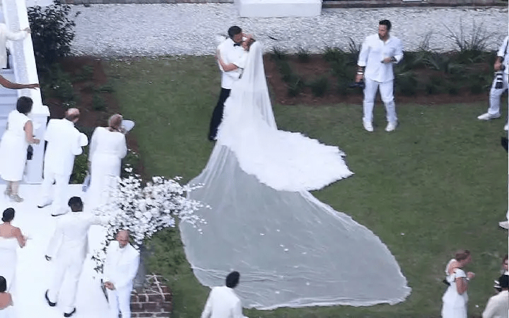 Venčanje ovog para je bilo glamurozno kao i dekoracija, bijele stolice okružene zelenilom i bijelim cvijećem, bijeli klavir i bogati stolovi bili su postavljeni na doku pored rijeke. Nakon ceremonije uslijedio je vatromet.