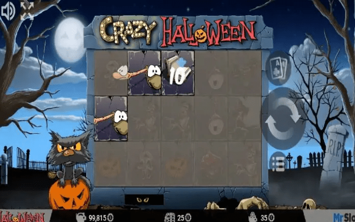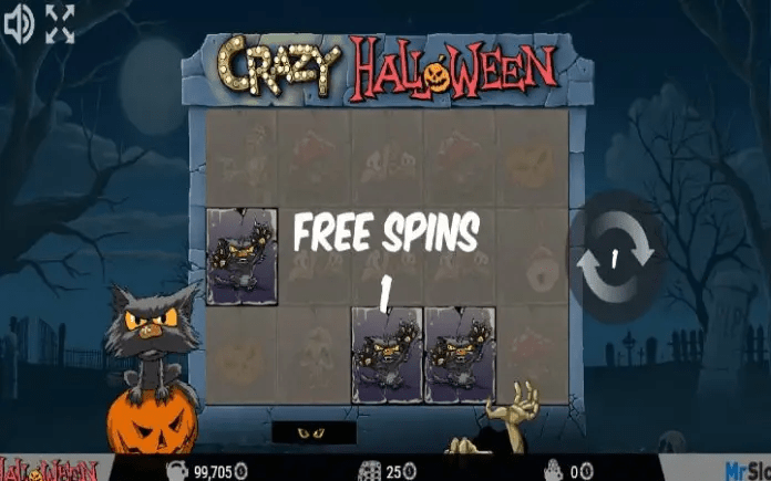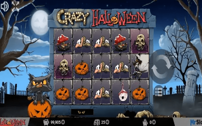 Kolone slota Crazy Halloween su smještene na gradskom groblju. Pored kolona ćete vidjeti mačku na bundevi koja mjauče i zabavlja se sve vrijeme dok spinujete.